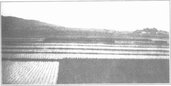 图4—4 日本种植水稻和灯心草的农田风光,黑色的区域种植着灯心草