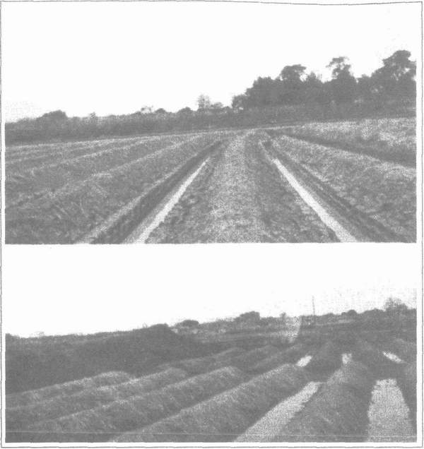 中国南部一般都种双季稻,在冬季或者早春时节,田里可能还会种植其他谷物、卷心菜、油菜、豌豆、黄豆、韭菜和姜等农作物,不停地轮作以使农田全年食物总产量最大化。由此人们需要花费大量的精力用于思考、劳作和积肥,这些工作超过了美国人所能接受的极限。图4—8展示了人们付出的这些努力能够带来多大的收获,图中两块土地上起着田垄,种上姜并覆盖着稻草,这些工作全部由手工完成,等到了种植水稻的季节,所有的田垄将会被推平。即使不种水稻,农民们也会将田垄翻整,使得深层的土地能够得到利用。很多人持有这样的观点,他们认为这些人使用的工具太简单,他们的工作是没有效率的。这种观点不符合现实,尽管他们的犁可能不适于深翻土地,但他们有别的办法弥补,并且频繁地深翻。