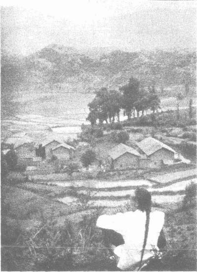 图5—7 较低的梯田种有豌豆、油菜和水稻,高处种有桑树