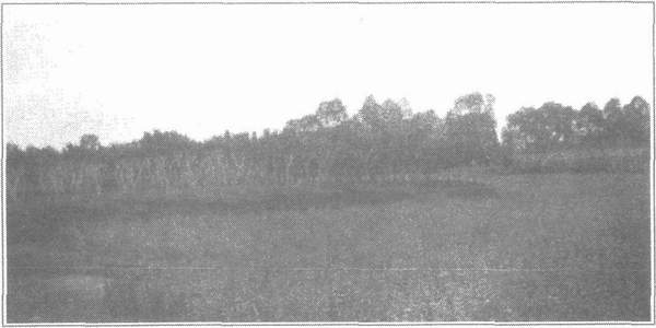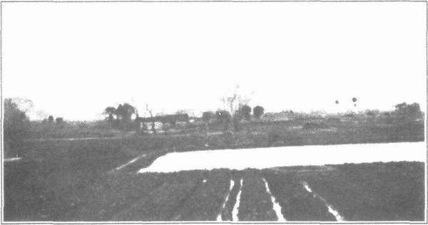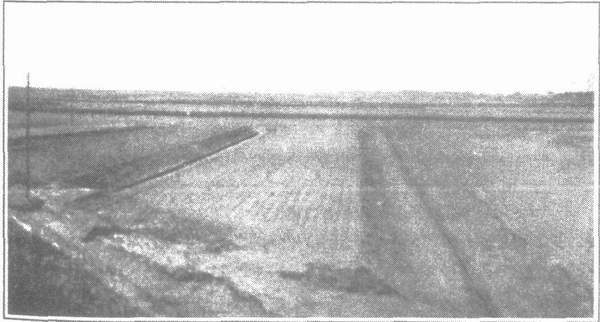 除了平整土地,还有另外一些旨在保存降雨和土壤肥力的方法被广泛采用,图5—8所示的就是其中之一,图5—8展示了蓄水池的一端。有三个这样的水库串联在一起,它们之间通过表面沟渠和运河相连。水库周边的土地平坦,垄与垄之间有浅水沟,沟的一端与水库边缘相接。 这样的水库可能有6-10英尺深,可以通过抽水,甚至旱季的蒸发将里面的水排干。 多余的地表水排入这些水库,带来的悬浮物沉积为泥浆后将回到田里变成肥料。 在准备堆肥时,人们会在水库附近挖些坑,如图所示,所有的残株废茬都扔进了这个堆肥池里,并与水库底部的软泥一块浸至饱和状态。