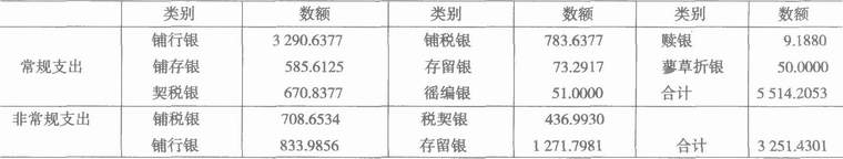 表5宛平县动支银两的类别和数量(银/两)
