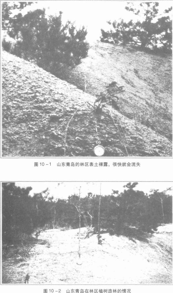 图10—7 山东土壤严重流失的区域,小麦种植在残存的土壤上