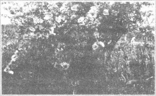 森林公园里种植着很漂亮的黄玫瑰,它原产于山东,在这儿主要起到点缀和美化公园的作用。 在我们看来,适宜其生长的国家都应该引进这种黃玫瑰。 公园里的黃玫瑰成簇地生长着,形成了一道6—8英尺高的墙。 远远看去,它们就如同一团黄灿灿的云,美丽极了。花儿朵朵绽放着,每朵都如珊瑚一般大。 花辦的黃是淡淡的,但却不失娇俏,而花心则是深橙色。 如图10—4所示,两者形成了鲜明的对比。 这种玫瑰花还有另一个显著的特点,即它们是成簇绽放的,有时一簇能达到12—18英寸长。 这些花儿十分紧密,有的甚至还重叠在一起。