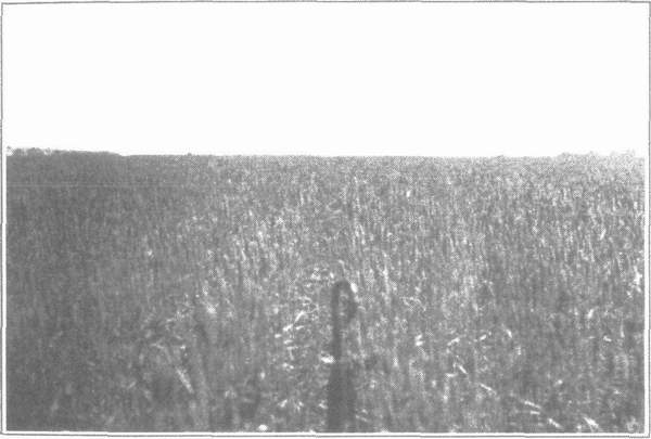 我们之前已经提到过,这儿田里和山上的作物都是成排地种植着。图10—13所示的是一些排成一列一列、成双成对种植着的作物,作物间隔是16英寸,每棵作物前后距离为30英寸。 每一对作物间的距离也是30英寸,因此4株作物橫纵共需要5英尺。 这种种法不仅使得人们能在早春时节和每次降雨后经常锄地,还使得人们在田间所施的肥料能得到最好的吸收,并且还方便重复施肥。 另外,在旁边面积更宽阔的空地上还可以在不拔除之前所种作物的基础上。经重新犁耕、施肥之后间种上新的作物。 山上,作物也是成排地种植着,而排与排之间的间距大约是:24—26英寸。