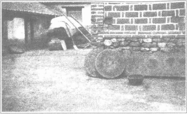 图10—20 榨油坊外放着两大块花生饼和装油的器皿