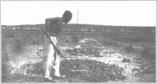 图10—21 这位老大爷正在施肥,其身后就是盖着肥料的茅草毡子