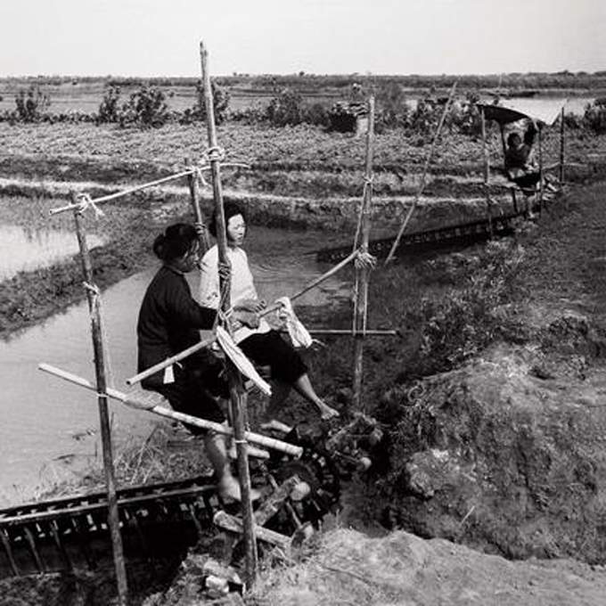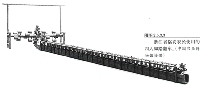 从以上分析看,翻车被广泛应用于生产和生活中决不是偶然的。宋元以后,翻车继续在更大范围推广,即使具备较为优越发展筒车的条件的地方,翻车仍然是日常农业生产中的主要排灌工具。[9]直到新中国成立以后,在电力抽水机普及以前,翻车仍然在农村的水利排灌事业中发挥着重要的作用。