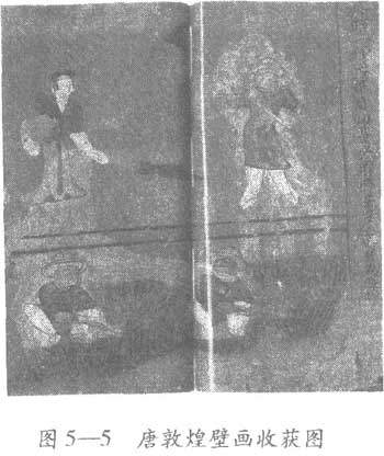 曲辕犁的出现,对于小农家庭最重要的意义是,它摆脱了二牛抬杠式的笨重结构,从而更方便配置。犁盘和软套的使用,牛轭的相应改进,使它在狭窄的田头地弯均可以转圜自如,适用于小块土地上耕作。于是,一家一户的农业耕作方式具备了更加独立和便利的条件。但是,曲辕犁的记载出现在晚唐时期,究竟在当时的普及程度如何,还不十分清楚。北方地区是否使用江东曲辕犁,还没有材料证明。从敦煌壁画的有关记载来看,二牛抬杠式的大型犁铧还在使用。樊绰《蛮书·云南管内物产第七》更说:“从曲靖州以南,滇池以西,土俗唯业水田。每耦耕用三尺犁,格长丈余,两牛相去七八尺,一佃人前牵牛,一佃人持按犁辕,一佃人乘耒。”这里的畜力耕作活动需要三个劳动力。因此,西汉的贫民“木耕手耨,土耰淡食”[9],不能说唐代完全没有。是木耕手耨或人力的耦耕,还是使用单人耕作的曲辕犁,或者使用河西二牛抬杠式耕犁,乃至樊绰《蛮书》中的二牛三人的老式犁,这都对当时农村家庭生产会有不同的影响。我们可以设想一下,只有几亩、十几亩土地的农户,很难说有力量使用牛耕技术。从《四民月令》、《汜胜之书》再到《齐民要术》、《四时纂要》,我们会得到一个强烈的认识,就是汉唐时代的北方农民很可能通过精耕细作提高单位面积产量来增产增收。汉代区田法就是通过投入大量劳动力,以达到提高粮食单产量的技术。[10]