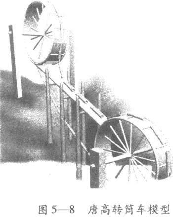 水稻的种植还带来灌溉工具的发展。大的水利工程,当然是政府来主持。地方长官的德政之一也就是兴修水利。所以,在政治清明、社会安定的情况下,政府主持的水利工程可以为许多中小农户家庭提供水利上的援助。国家设立渠长、斗门长,由50岁以上的勋官中和停职在家的地方吏职(所谓“职资”)中那些有干才的人担任,“至溉田时,乃令节其水之多少,均其灌溉焉”。[12]在南方池塘湖汊比较多的地方,小型灌溉农具一般为农家所必备之生产资料。前代使用的戽斗、桔槔、辘轳、翻车(水车的一种)等仍然是农民家庭的主要灌溉工具。戽斗是用藤条、竹篾等做成的灌水工具,可一人使用,也可以两人使用。桔槔是利用杠杆原理从井中汲水的一种装置,较诸抱罐打水,它是一种进步,在先秦时期已经普遍使用。辘轳是利用滑轮的原理而制成的提汲机械,比较原始的辘轳在汉代就已经广泛使用。翻车是水车的一种,后世的龙骨车应该是其改进型。唐代一般农民家庭无力置办大型农具,只好仍然因陋就简。比如戽斗一直到明清时期还是江南农家的常用农具。桔槔、辘轳更不用说了。宋人陆游《喜雨》:“水车踏罢戽斗藏,家家买酒歌时康。”其《村舍》之四:“山高正对烧畲火,溪近时闻戽水声。”当然,这里的戽水未必是以戽斗汲水,乃泛指浇灌。黄梅戏《天仙配》里的挑水浇园也是农家常用的灌溉方式。徐光启《农政全书》卷十七:“凡水岸稍下,不容置车,当旱之际,乃用戽斗。”其所附戽斗图展示两人对举戽斗从池塘舀水溉田。新增加的水车品种是筒车。这种筒车与纺车相似,只是将竹筒绑在车的传动带上,利用水的力量从低处转出到高处。南方圩田的开发就是建立在水利灌溉技术提高的基础之上的。总之,个体农民的灌溉方式从唐宋以降就没有太大的变化。