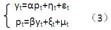 一旦我们希望得到较为可信的区间估计,就有必要对价格和产出的相关关系进行更全面的讨论。正如表2中所已揭示,影响价格的绝非只有产出,另一方面,若要将产出完全视为外生,怕也勉强。[7]不妨通过如下模型来理解t期价格与产出间的可能关系: