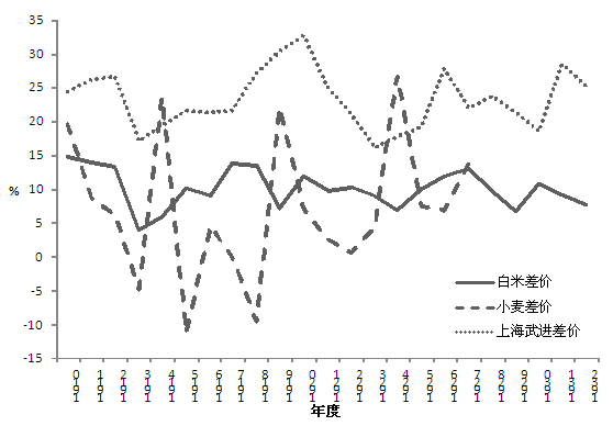 注:白米差价、小麦差价分别为白米和小麦的支付价格相对所得价格的差价;上海武进差价为上海中等粳米市价相对武进白米所得价的差价。[14]
