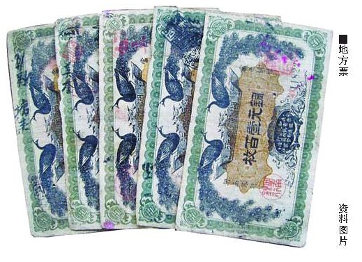 一些地方军阀借武力把持一县或数县地盘,竭尽搜刮勒索之能事,发行流通券是他们常用的手法之一。军政府利用纵向纸币发行体系,实现赤裸裸的抢夺。福建省防军第三旅旅长卢兴邦以就地筹饷为名,于1925年在尤溪县城关设立广豫汇兑庄,发行大洋票,强迫其辖区尤溪、永安、大田、沙县等地商民流通使用。后停止兑现,四县商民因此蒙受重大损失。1940年河南省永城县县长刘子仁在该县山城集印发“永城县地方纸币”,在城南城北四五个区流通,发行量大。据1944年10月18日的《路西通讯》称,总发行数为5000万元,引起通货膨胀。1944年该纸币废止。