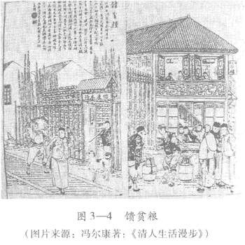 四是接受国家或社会的救济以及亲友馈赠的收入。每当发生灾患,明清国家一般都会采取一些救济措施,比如在清代规定,受灾五分以上为成灾,若勘成灾,灾民分极次贫可享受一到四个月的口粮赈济。赈济标准为每日大口授米五合,小口(十六岁以下)半之。若米谷不足,则按时价折钱。此外,受灾五分以上(包括五分)的田地还可蠲免十分之一到十分之七的赋税[10]。而且这些规定也并非一纸具文,例如,在被一般认为已经走向衰败的道光时期,仍可以看到这类救济的切实执行,不仅国家调拨帑金,而且还积极发动民间社会力量开展救济活动。比如,道光三年(1823)南方普遍大水,江南地区受灾尤甚,在江苏,国家共调拨帑银170余万两,并筹集民间捐款195万两。而在苏州一地,官赈和社会捐赈分别为35万两和50万两以上,基本实现了“民沾实惠”、“一境帖然”[11]。除了灾荒救济以外,明清时期,特别是明中后期以来,社会上还兴起了众多的Et常社会机构和宗族义庄,无疑也会让一些下层民众获得一些收益[12]。当然接受救济基本都是社会的下层贫民。而亲友之间的馈赠,则是社会所有阶层共有的现象,虽然亲友间礼物的流动总体上是平衡的,不过对某个家庭来说,在某一特定时间内,这类馈赠亦可成为重要的收入来源。此外,对那些赤贫家庭来说,鬻妻卖女也会成为其摆脱困难的手段。特别是在灾荒之年,鬻卖儿女,为人作奴婢或者小妾,更是十分流行,价格之低廉,甚至斗米即可买一人,千钱即可买一仆。有一首诗描绘了被鬻卖之女儿的凄凉心境。