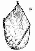 簸箕的早期形制文献缺少记载,考古中也很难见到实物。但从各地出土的汉代陶俑有关簸箕的模型,使我们能对当时的簸箕形制有直接的认识。在四川新津出土一汉代背儿劳动俑,此农妇头上梳两缕髻发分垂于两耳之下,背负一婴儿,双手平端一簸箕,似在簸扬(如图2)【11】。新津还出土有东汉陶俑,男性,身材粗短,着长服,挽袖,左手前曲执插,右手执箕。与此俑类似的石俑,在四川峨嵋和郫县也有出土。此外四川彭山出土东汉陶俑,男性,头戴圆帽,身着圆领半长衣,右手于胸前执插,左手下垂执箕(如图3)。《王祯农书》附有当时使用的一种前端带舌的簸箕图(如图4)。与近现代的簸箕形制比较,簸箕自汉代始形制无大的变化,表明簸箕形制至迟在汉代已基本成熟,并为后世所沿用。
