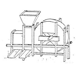 。古者雍父作舂,鲁班作磑。扇,扇车也。隤,扇车之道也……隤之言坠也。言即扇之,且令坠下也。舂则簸之、扬之,所以除糠秕也。扬字或作飏,音义同。”以上记述了我国古代谷物清选加工的三种方式及工具:一是借助自然风的“扬”法,主要的工具有杴和飏篮;二是“簸”法,主要的工具是簸箕;三是利用风扇车等设备产生间断或连续的人造风对谷物进行清选,达到去粗取精的目的,主要设备为风扇车。