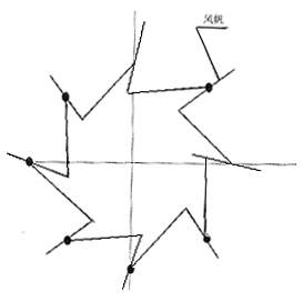 天津塘沽地区和江苏阜宁地区的风车原理基本相同,但风帆的张挂方法不尽相同。塘沽风车的风帆在绳子拉紧时与风轮半径重合(如图18)。【32】苏北阜宁风车在拉紧时与风轮半径成一初始角(如图19)。【33】同济大学机械史课题组对两种类型的大风车进行了受力分析和计算机辅助分析计算比较,发现阜宁风车风帆的效率较塘沽风车的大。【34】