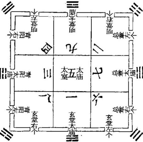 图一:清代经学家胡渭在《易图明辨》中绘出的明堂九室图