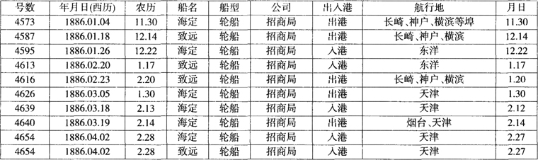 三、1886年轮船招商局汽船的日本航行