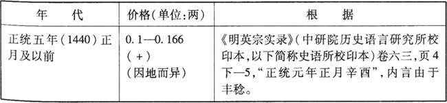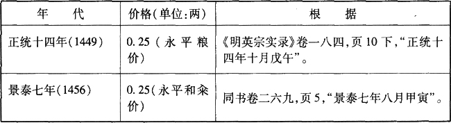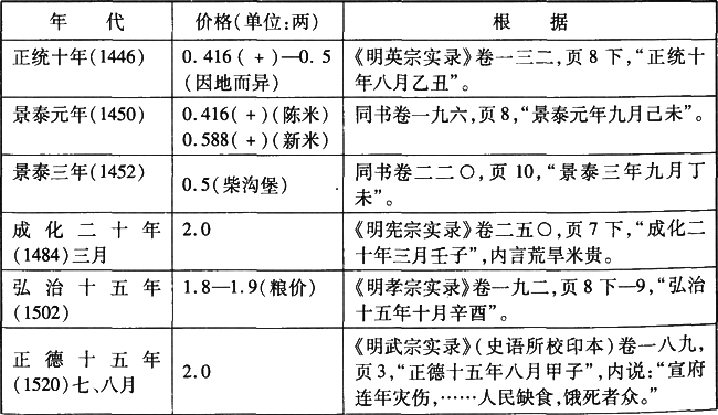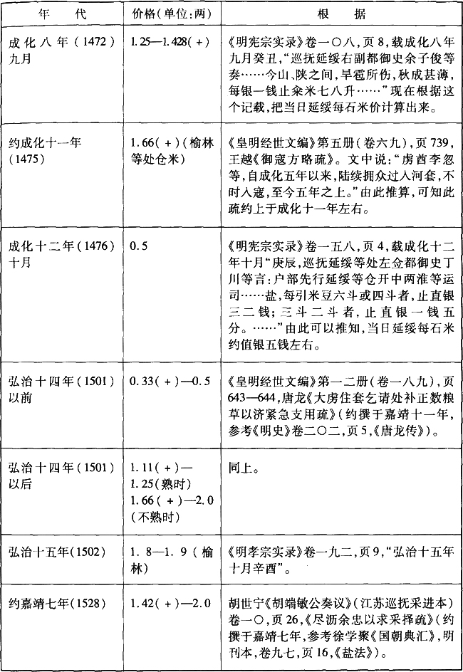 上述明代北方各镇以银表示的米价,约在15世纪中叶以前不久