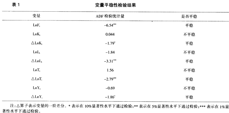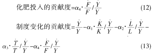 无论是在林毅夫(1992)还是在陈志刚(2005)的研究中,对于中国农业绩效生产函数都不约而同的设定为如(6)式所示的形式。