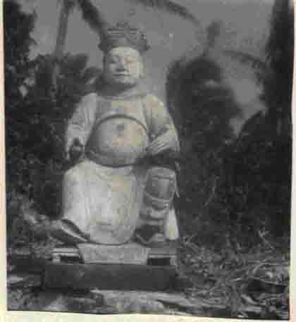 该年3月6日,他们在海南琼海县谭门公社草塘大队上教村发现一间小庙,庙内神像是一尊穿着明朝官服的木刻神像,圆脸,大肚子。当时他们都没有太在意,只觉得神像的官员形象很特别,所以拍摄了照片,保存在广东省博物馆。