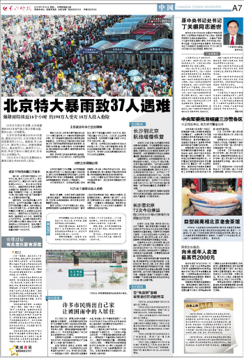 北京特大暴雨到昨晚已致37人死亡,这一数字令人震惊而沉痛。这场北京有气象记录以来最大的暴雨冲出了中国现代化的原形,以及北京作为发展中国家首都的本色。北京和我们这个国家显然有很多很多事情要做。
