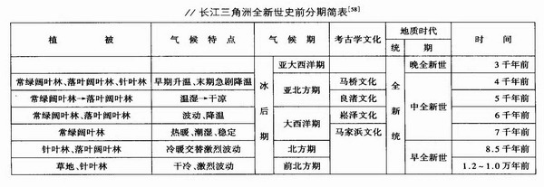 [55]施雅风等:《中国全新世大暖期的气候波动与重要事件》,《中国科学》(B辑)1992年第12期;温孝胜等:《中国全新世气候演变研究的进展》,《地球科学进展》1999年6月;萧家仪:《江苏吴江县龙南遗址抱粉组合与先民生活环境的初步研究》,《东南文化》1990年第5期。