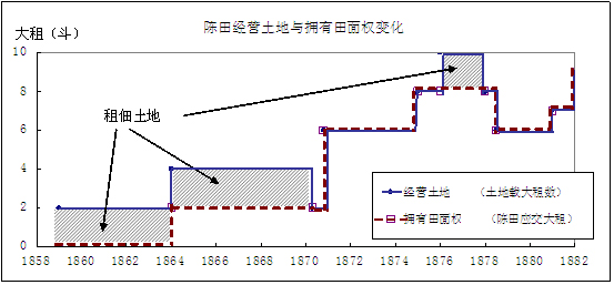 图5 大甲西社陈田经营土地与拥有田面权的增减