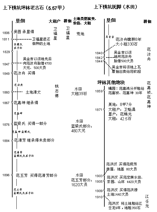 [30] 此处根据范家文书0031、0032范嘉鸿、嘉坤、嘉祯的分家书推测。因为只收集到范家鸿、嘉坤继承的产业的文书,而这两份文书中没有提到上横坑的产业归谁,因此推测上横坑的产业分给了嘉祯。