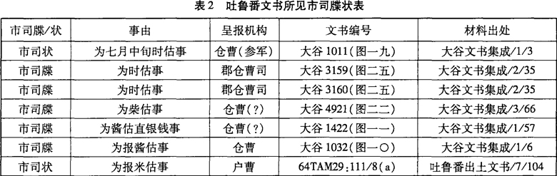 【17】大谷文书1011号《西州交河郡官厅文书断片》云:“市司状,为七月中旬时估事。”参见小田义久编《大谷文书集成》第一卷,法藏馆1983年版,第3页。