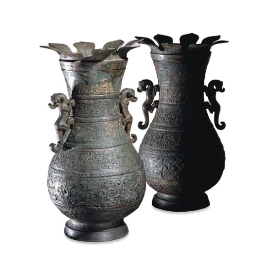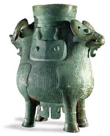 青铜器是在公元前1600年首次铸造的。通常在仪式上使用,向祖先供奉食物和酒。成套的青铜器与其所有者下葬。皇帝及其妻妾比皇室贵族们拥有更多的精致器皿,皇室贵族比一般贵族更为富有,富贵程度由社会等级来划分。在墓穴和宝库里发现了许多不同形状的器皿,这让我们了解到了它们的历史和样式的发展。