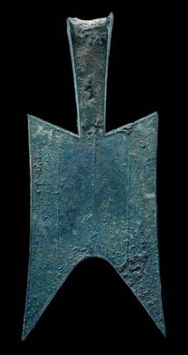 3.青铜空首布钱币 来自中国晋国。东周,公元前5世纪(正面图)