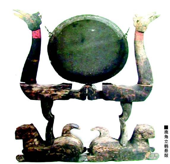 考古发现的史前时期的鼓有土鼓和木鼓。《礼记•明堂位》中记载:“土鼓、蒉桴、苇龠,伊耆氏之乐也。”《周礼•春官》郑玄注引杜子春语曰:“土鼓,以瓦为匡,以革为面,可击也。”这里所指的土鼓,就是用陶土烧成鼓框,再蒙上动物皮做成的陶鼓。目前,考古发现的土鼓出土较多,在甘肃、青海、河南、山东等地的新石器时代遗址中均有发现。这些也是今天所见鼓类文物的早期标本。山东泰安大汶口文化遗址10号墓出土的两件原定名为陶壶的器物即为这种陶鼓。