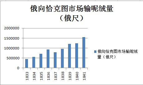1843年俄国输入恰克图市场的商品没有得到充分交换,已交换的呢绒类商品总共有21 339疋,而积压的就达到了 52 766疋;皮革类商品交换的总量为1 169 591 张,积压的为 2 235 413张;麻布和天鹅绒等纺织品共交换1 734 150俄尺,积压的为2 505 482俄尺。每类商品积压的数量几乎是已交换数量的两倍,也就是说,俄国输入恰克图的商品只有三分之一可以与中国商品交换。
