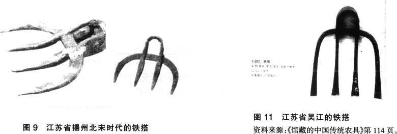 [19]宋树友主编:《中华农器》第1卷,第225~226页。江苏省扬州在北宋从废墟中出土农具,一个被称为铁搭,另一种被称为四齿钁。